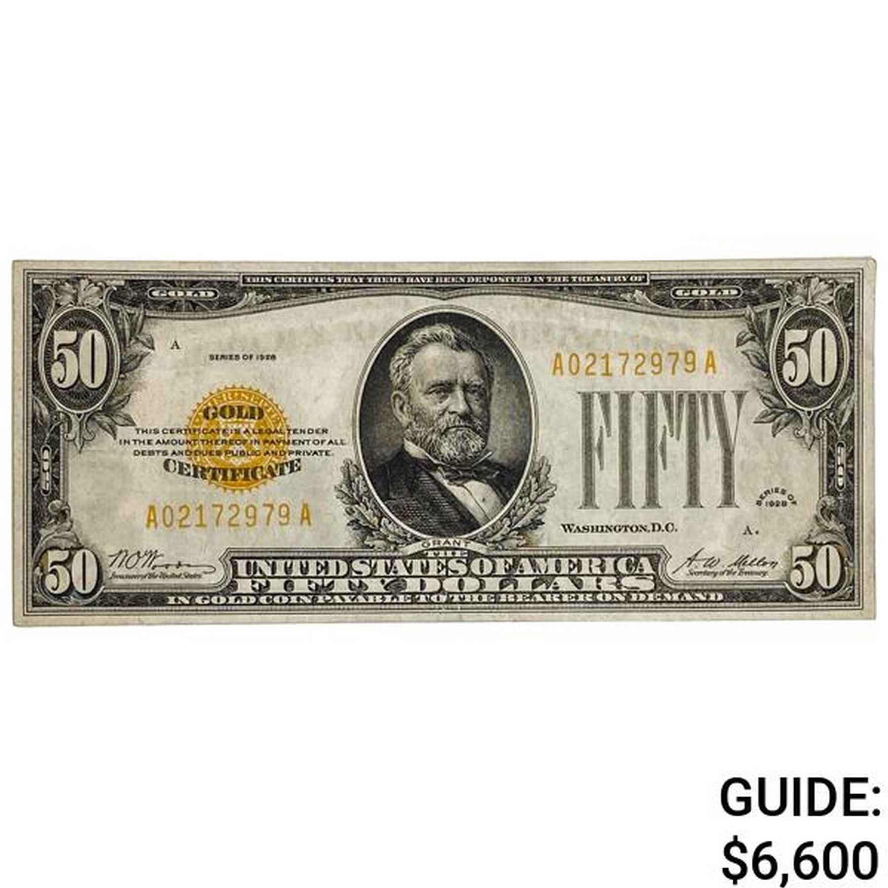 1928 $50 GOLD CERTIFICATE NOTE UNCIRCULATED