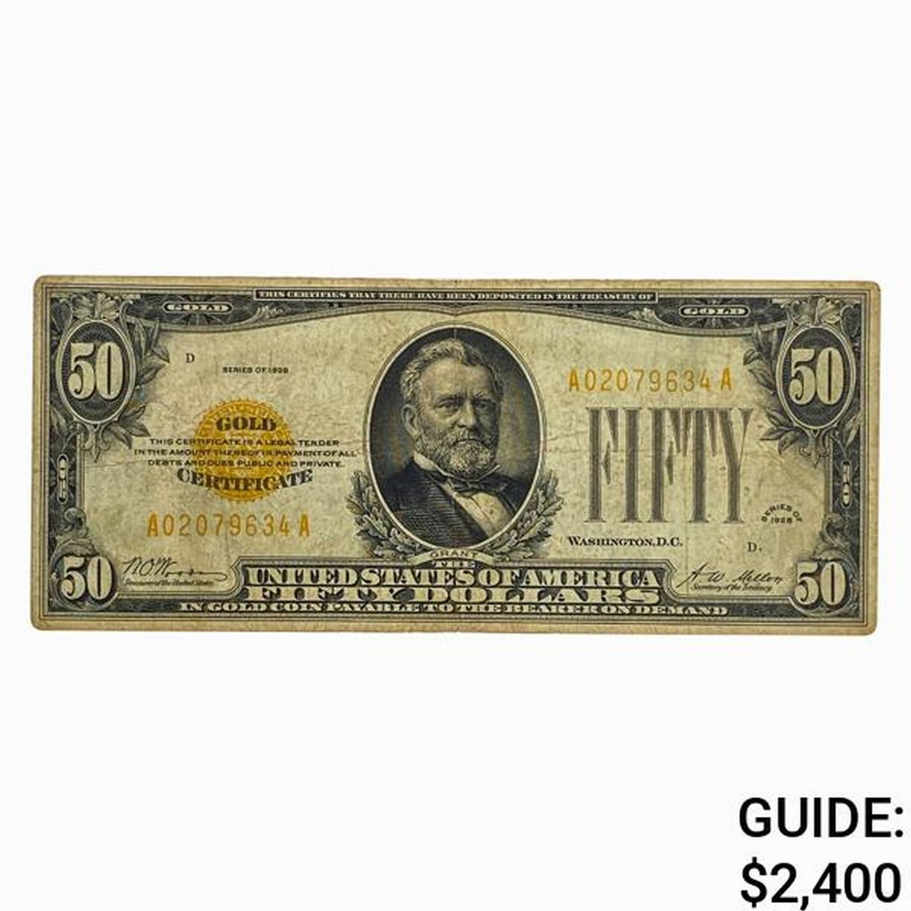 1928 $50 GOLD CERTIFICATE NOTE VERY FINE