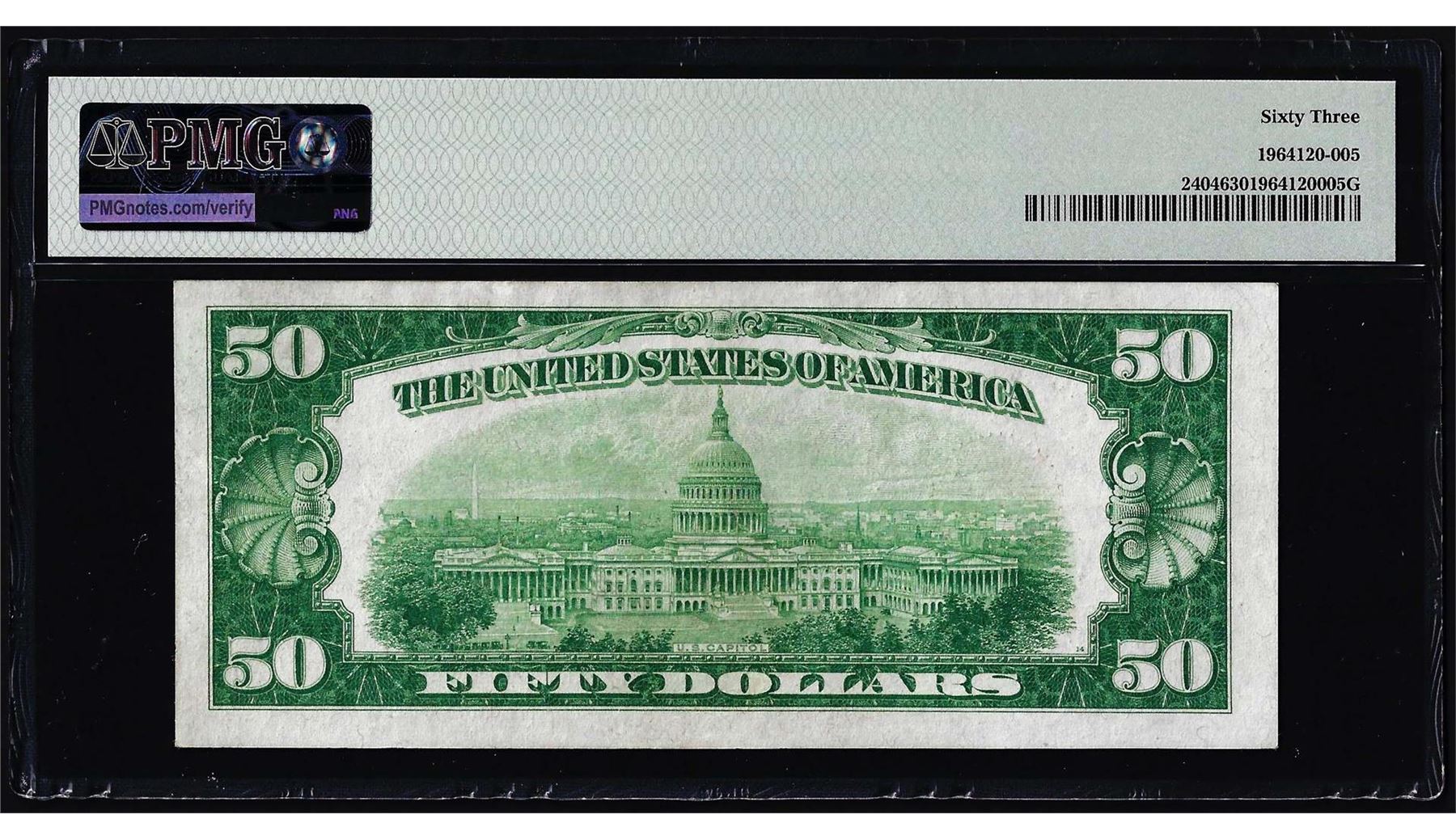 One 1928 $50 Gold Certificate Note Fr.2404 PMG Choice Uncirculated 63. PMG Certified.