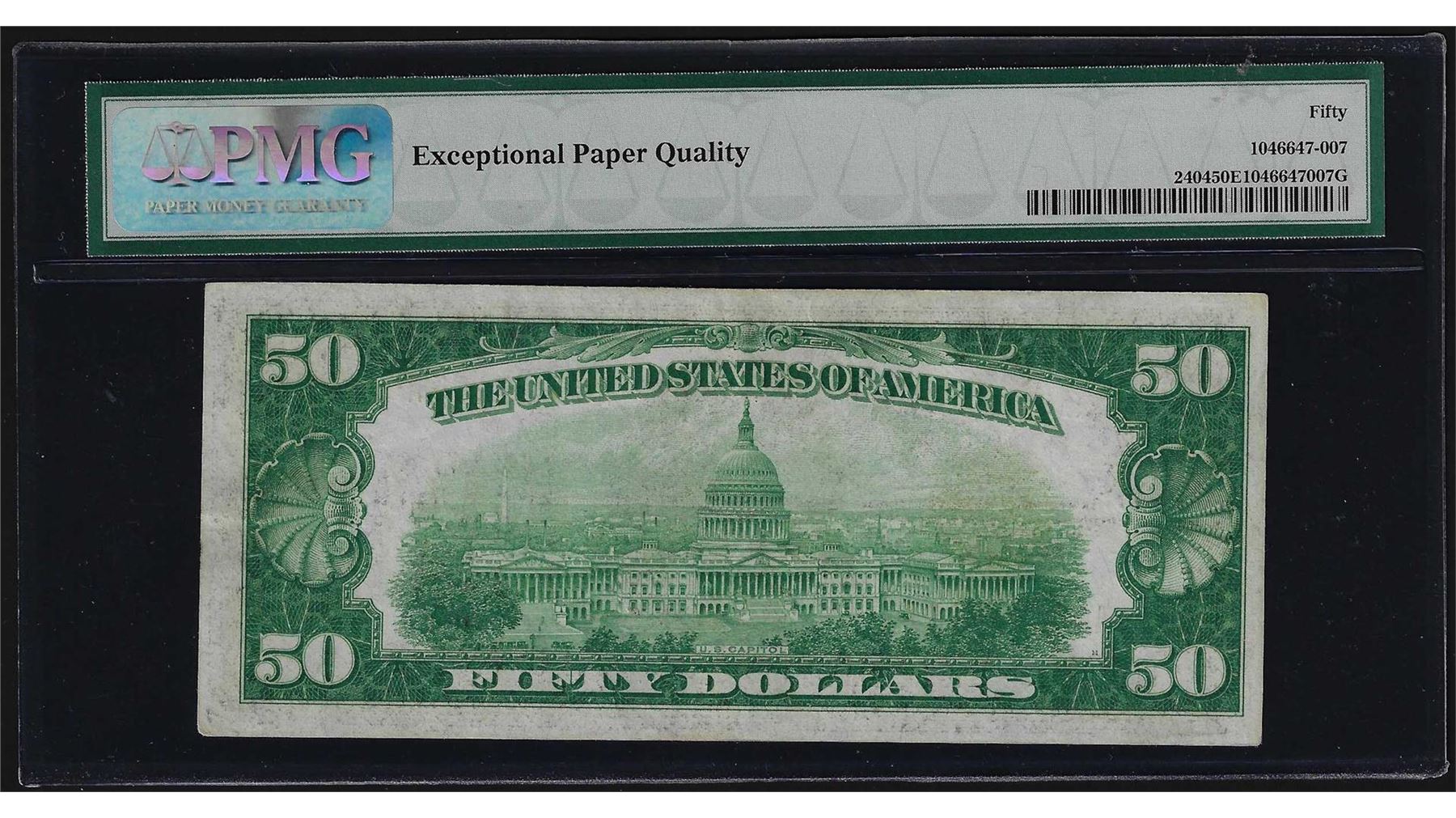 One 1928 $50 Gold Certificate Note PMG About Uncirculated 50EPQ. PMG Certified.