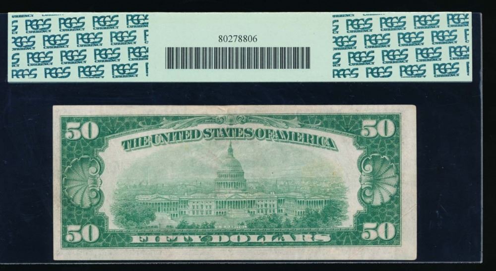 One 1928 $50 Gold Certificate PCGS 50PPQ.