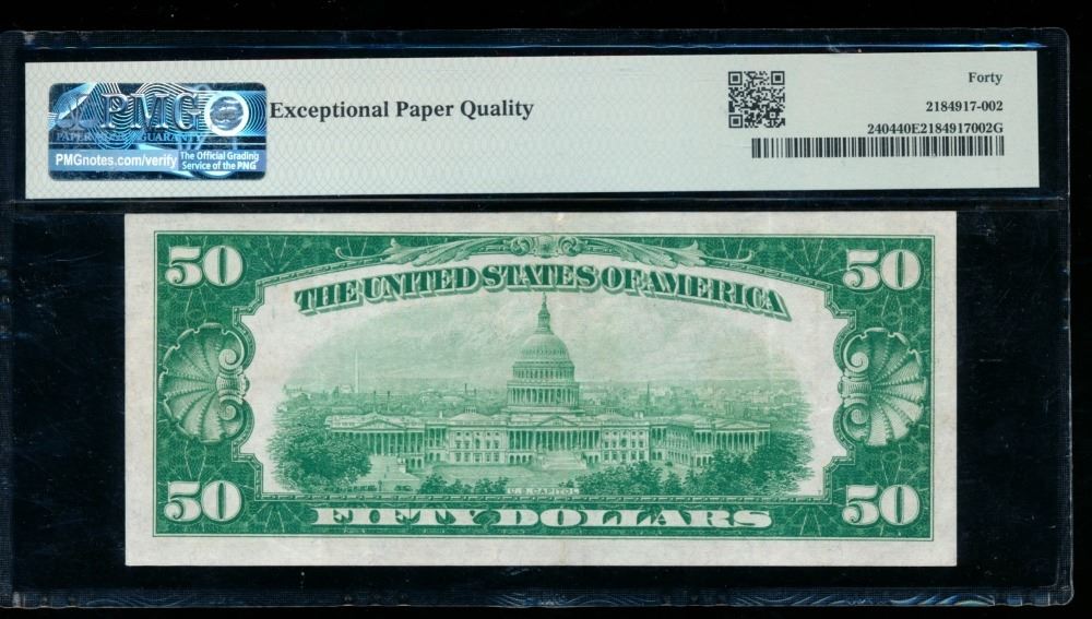 One 1928 $50 Gold Certificate PMG 40EPQ.