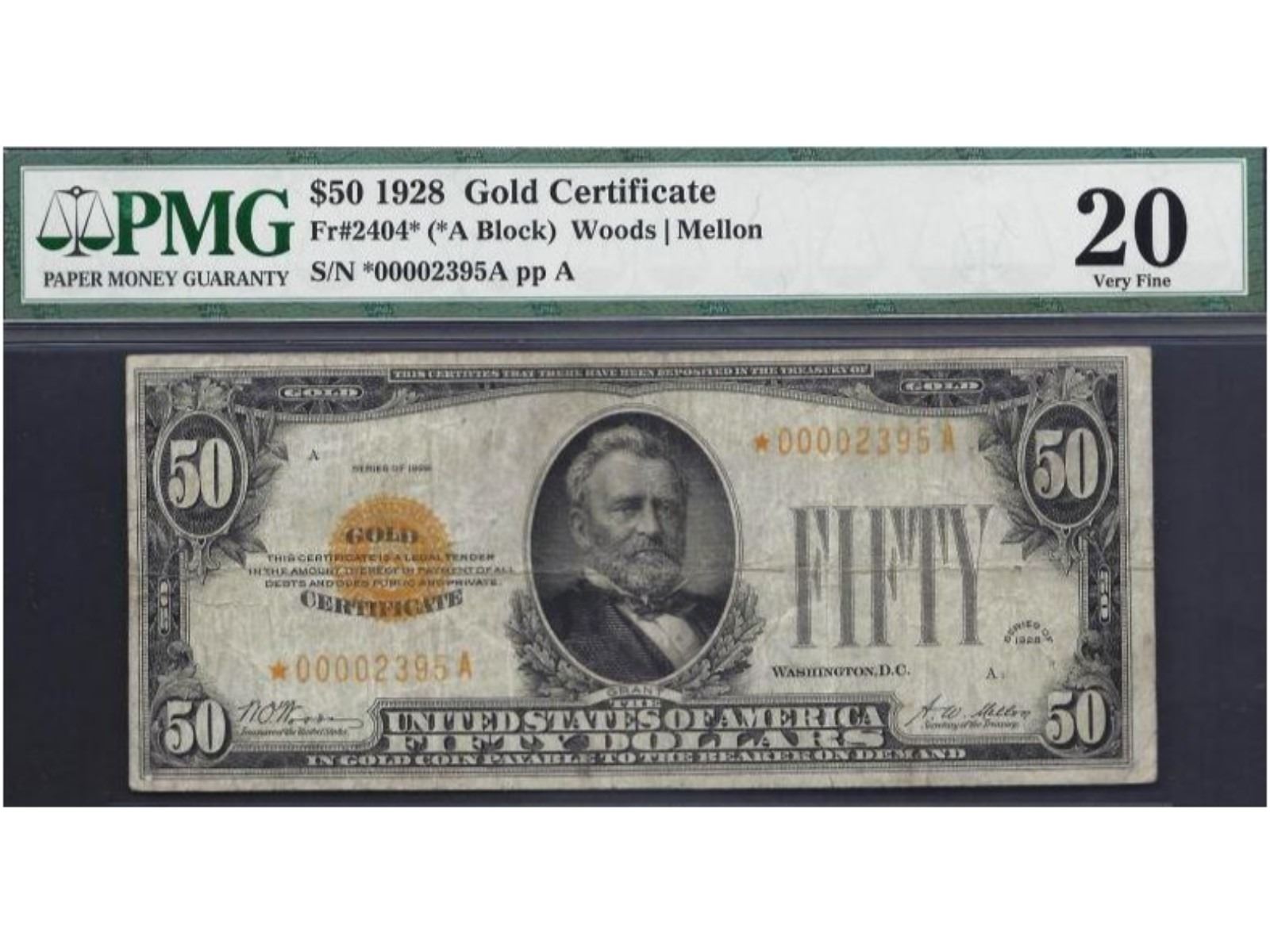 One 1928 $50 Gold Certificate Star Note PMG 20.