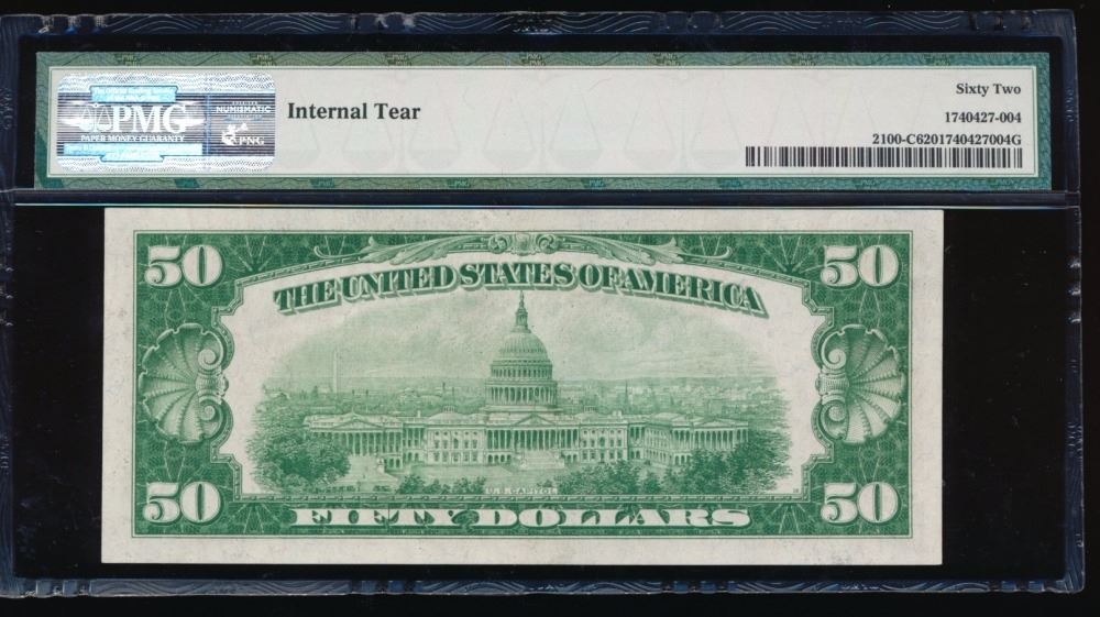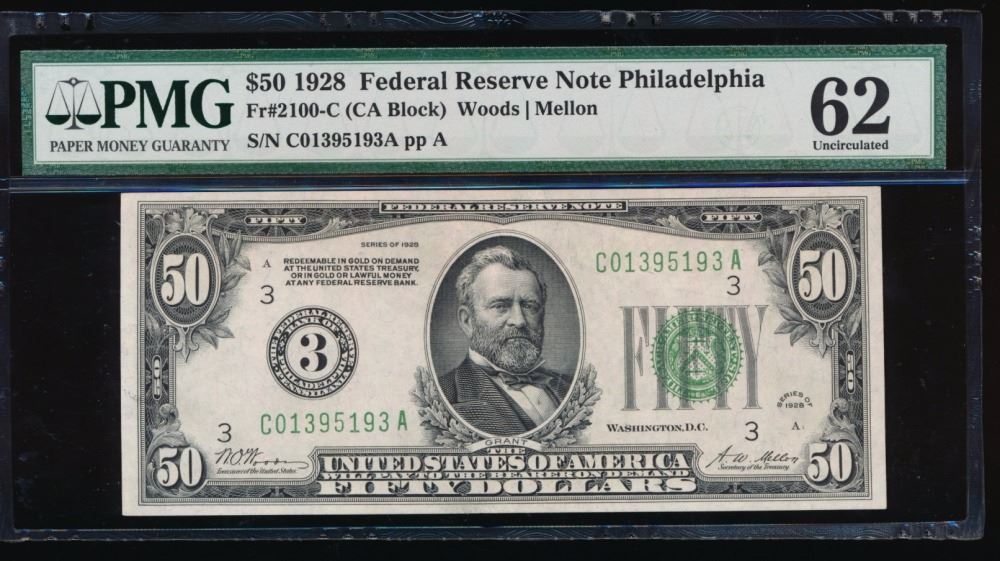 One 1928 $50 Philadelphia Federal Reserve Note PMG 62.
