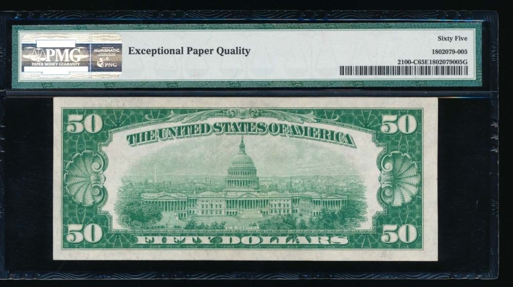 One 1928 $50 Philadelphia Federal Reserve Note PMG 65EPQ.