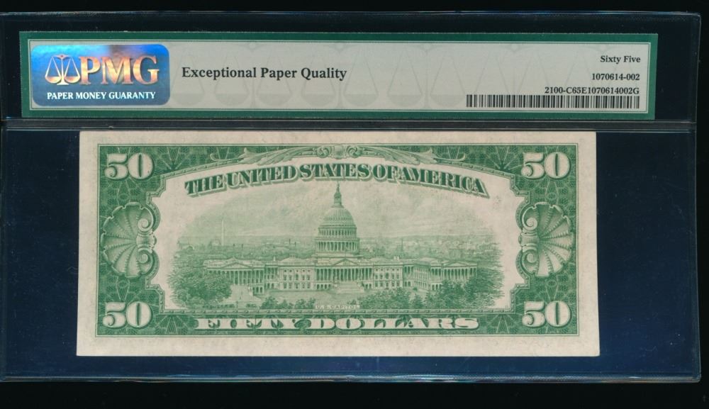 One 1928 $50 Philadelphia Federal Reserve Note PMG 65EPQ.