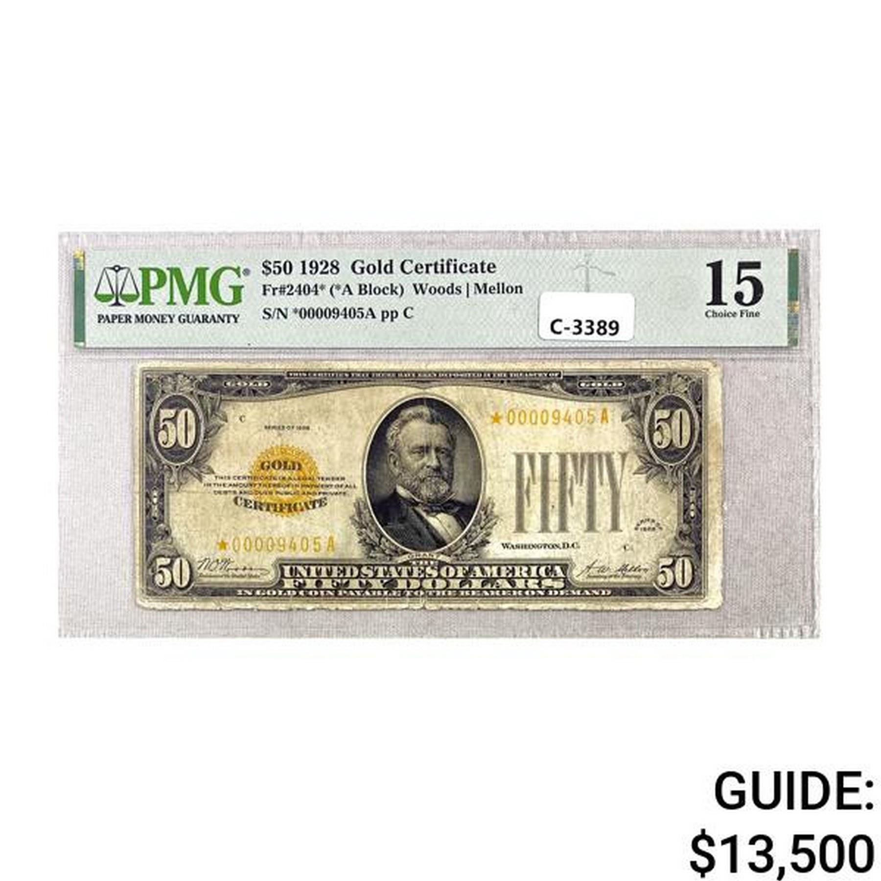 1928 $50 STAR GOLD CERTIFICATE PMG CH F15
