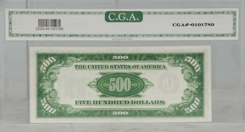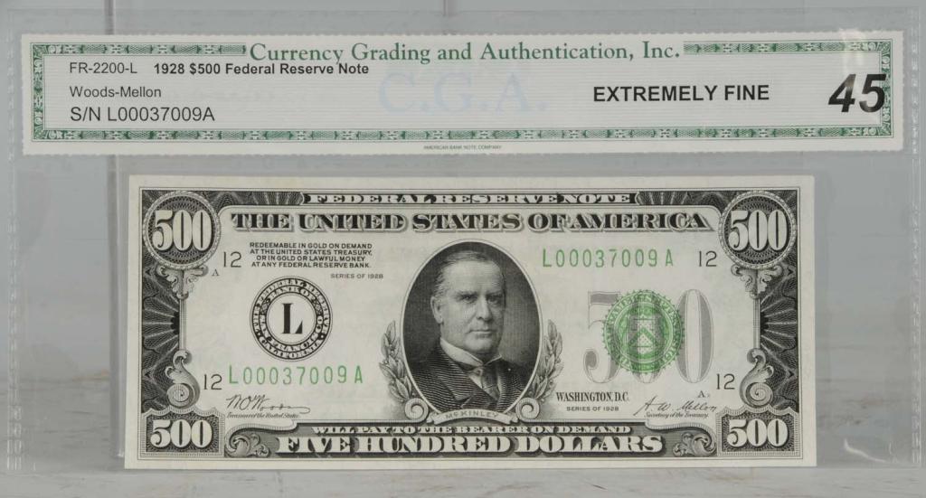 San Francisco, California. Series of 1928. Serial number "37009A". Very bright and clean bill. C.G.A. extremely fine. Grade 45. Currency