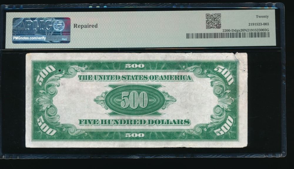 One 1928 $500 Cleveland FRN PMG 20NET.