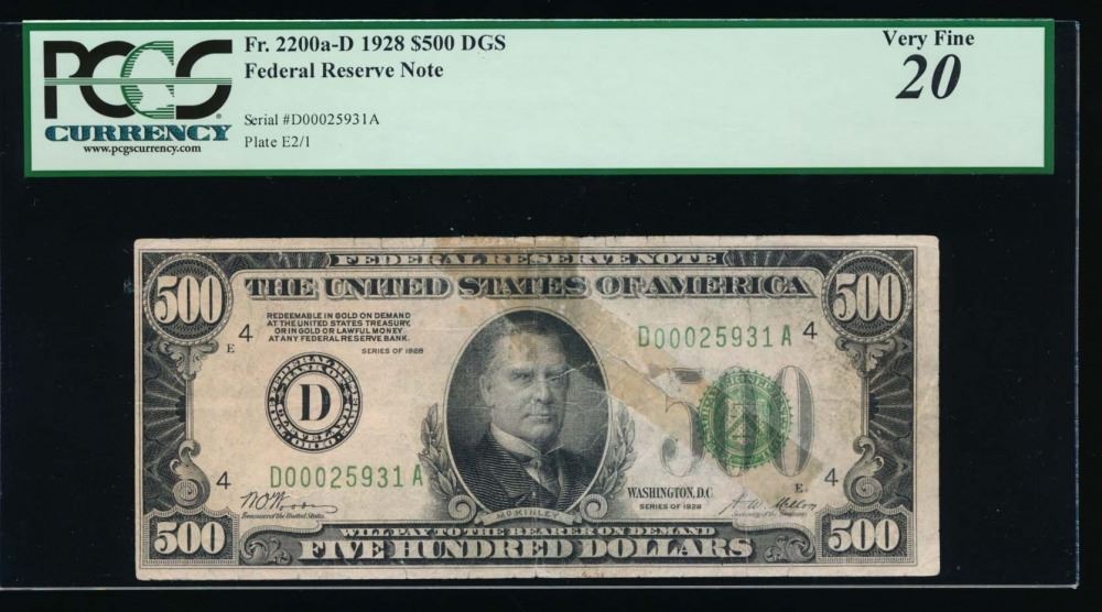 One 1928 $500 Cleveland Federal Reserve Note PCGS 20.
