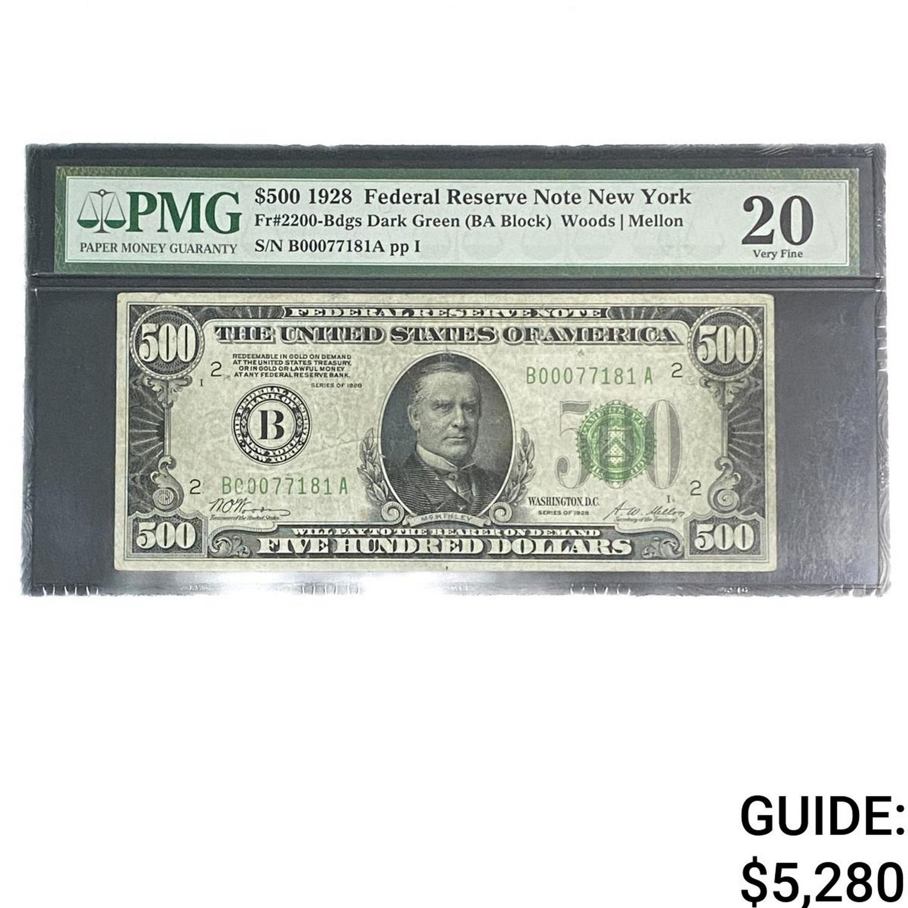 1928 $500 Federal Reserve Note New York PMG VF 20
