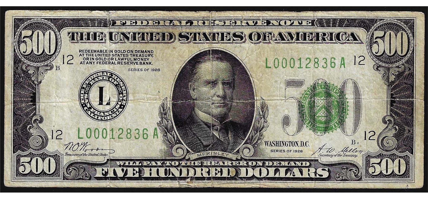 One 1928 $500 Federal Reserve Note San Francisco.