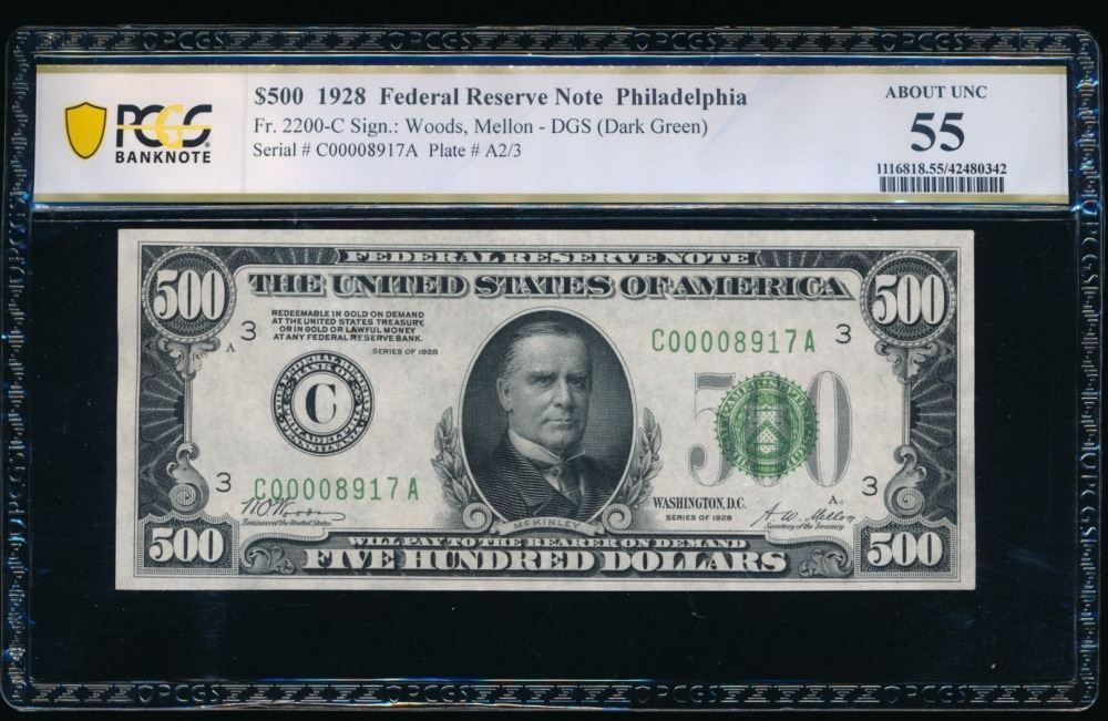 One 1928 $500 Philadelphia FRN PCGS 55.