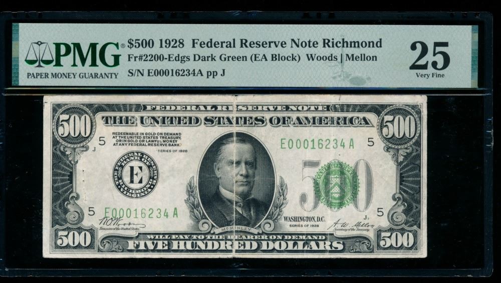 One 1928 $500 Richmond FRN PMG 25.