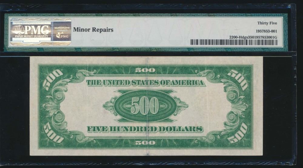 One 1928 $500 St Louis Federal Reserve Note PMG 35.