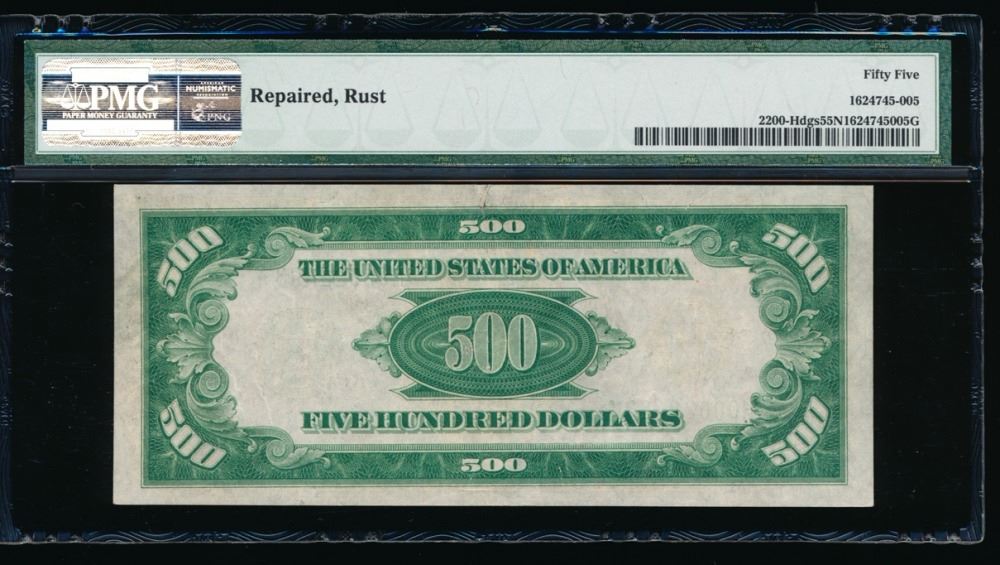 One 1928 $500 St Louis Federal Reserve Note PMG 55NET.