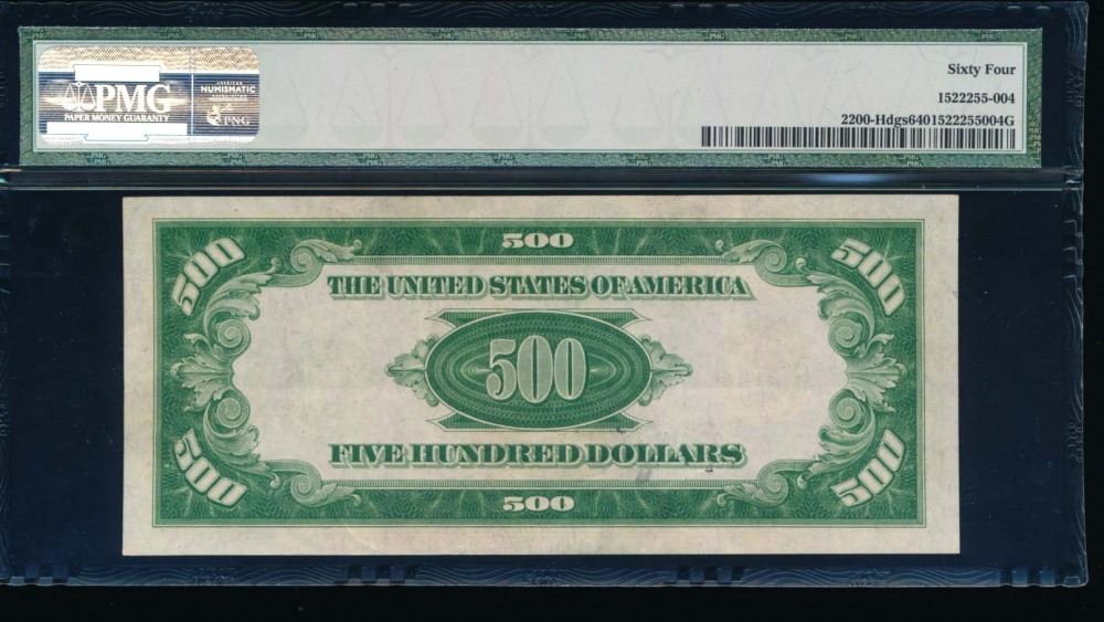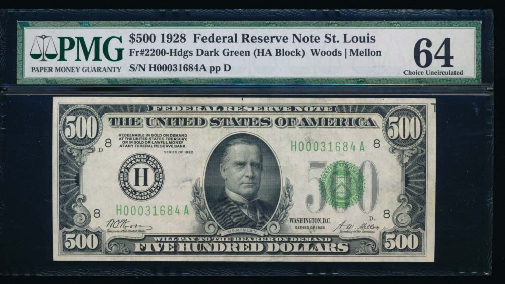 One 1928 $500 St Louis Federal Reserve Note PMG 64.