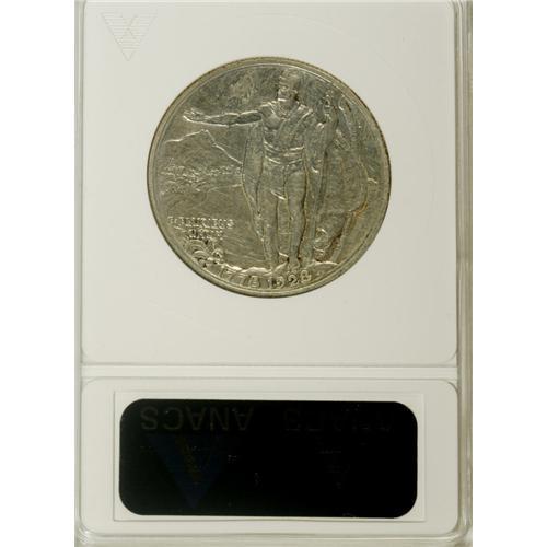 <B>1928 50C Hawaiian--Cleaned--ANACS. AU58 Details.</B></I> A loupe reveals delicate hairlines across both sides, and the fields are perhaps unnaturally reflective, but this is a sharp key date commem with only a hint of wear on Captain Cook's cheekbone.<BR><BR><b>Shipping:</b> Coins & Currency (<a target="_blank" href="http://www.heritageauctions.com/common/shipping.php">view shipping information</a>)