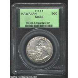 1928 50C Hawaiian MS63 PCGS. Light peach and lilac patina. Well struck and carefully preserved with moderate luster. The most desirable of all Silver Commemorative types. Although the mintage of 9,958 is similar to that of the Hudson and Spanish Trail issues, the earlier issued Hawaiian Commemorative is decidedly scarcer. Important notice: We expect to be auctioning lots at the rate of 200-250 per hour. Sometimes eBay Premier live bid software cannot keep up with that pace, so we strongly recommend that you place a realistic proxy bid now as insurance to avoid disappointment. Also please note that all Heritage/CAA lots purchased through eBay Premier carry a 20% Buyer's Premium. Please make sure you read the Terms and Conditions.