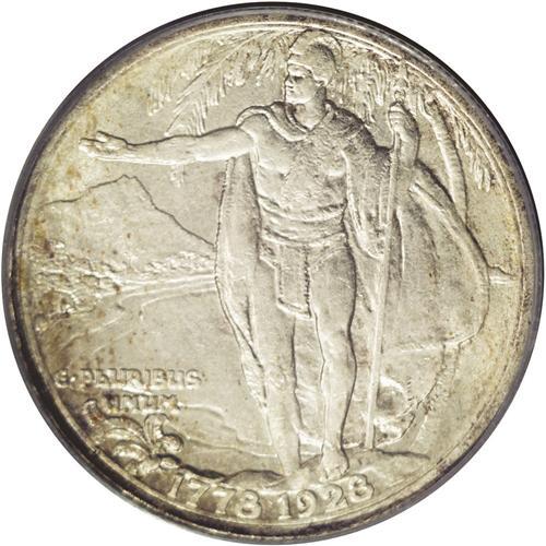 <B>1928<50C> Hawaiian MS64 PCGS.</B></I> A smattering of mottled golden-tan toning has accumulated in selected border areas. Otherwise, a bright, well defined example with a few minor marks at the central regions on each side.