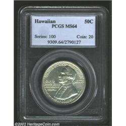 1928 50C Hawaiian MS64 PCGS. Bright with softly frosted, almost satiny surfaces, both sides are largely untoned. There are a few sprays of tan patina over the upper and right reverse, but distracting abrasions are few and even farther between. Always in demand as one of the more widely known keys to the U.S. Commemorative series. Important notice: We expect to be auctioning lots at the rate of 200-250 per hour. Sometimes eBay Premier live bid software cannot keep up with that pace, so we strongly recommend that you place a realistic proxy bid now as insurance to avoid disappointment. Also please note that all Heritage/CAA lots purchased through eBay Premier carry a 20% Buyer's Premium. Please make sure you read the Terms and Conditions.