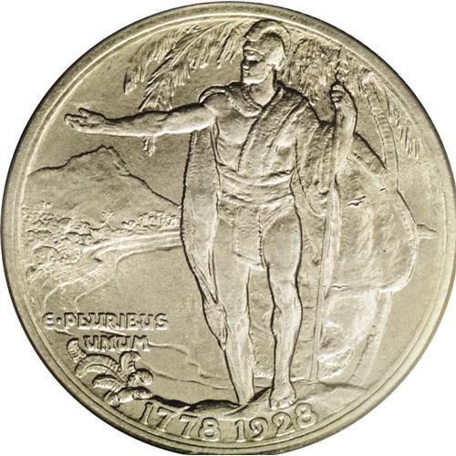 <B>1928<50C> Hawaiian MS64 PCGS.</B></I> Even golden-green toning is seen over both sides of this attractive coin. Better preserved than the typical example, this bright, satiny near-Gem should fit nicely into a high grade set of commemoratives.