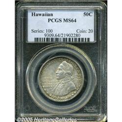 <B>1928 50C Hawaiian MS64 PCGS.</B></I> Frosty gray luster is hidden beneath deep golden-brown and iridescent toning. Hints of light blue color are also visible on each side. An attractive and desirable example of this scarce and popular commemorative issue.