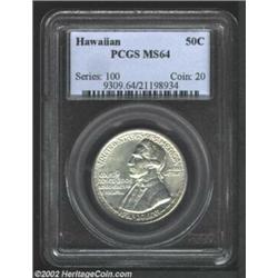 1928 50C Hawaiian MS64 PCGS. One of several desirable Hawaiian Commems in this sale, this near-Gem i
