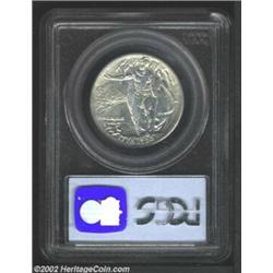 1928 50C Hawaiian MS64 PCGS. One of several desirable Hawaiian Commems in this sale, this near-Gem is just a few trivial abrasions away from an even higher grade. Both sides are untoned, or essentially so, with solid striking quality for the issue. Essentially satiny in finish with modest cartwheel luster effects. Important notice: We expect to be auctioning lots at the rate of 200-250 per hour. Sometimes eBay Premier live bid software cannot keep up with that pace, so we strongly recommend that you place a realistic proxy bid now as insurance to avoid disappointment. Also please note that all Heritage/CAA lots purchased through eBay Premier carry a 20% Buyer's Premium. Please make sure you read the Terms and Conditions.
