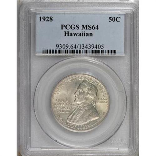 <B>1928 50C Hawaiian MS64 PCGS.</B></I> Silky luster traverses this minimally abraded near-Gem. The obverse is particularly void of contact. Delicate chestnut-gold and ice-blue toning denies full brilliance. Precisely struck and undeniably desirable, since the Hawaiian is the key to the 50-piece classic silver commemorative type set.<BR><BR><b>Shipping:</b> Coins & Currency (<a target="_blank" href="http://www.heritageauctions.com/common/shipping.php">view shipping information</a>)