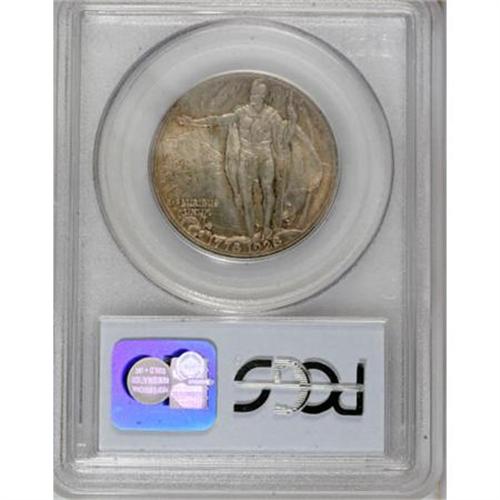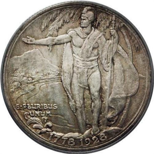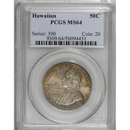 <B>1928 50C Hawaiian MS64 PCGS.</B></I> The surfaces of this Choice Mint State Hawaiian half dollar are mostly medium gray, with gold toning outlining the devices and following the borders. The mintage of the Hawaiian is close to that of the Hudson and Spanish Trail, but the distribution differed. 200 pieces were reserved for presentation, another 4,975 pieces were sold to the U.S. collectors, and the remaining 4,975 pieces were held for Hawaiian purchasers.<BR><BR><b>Shipping:</b> Coins & Currency (<a target="_blank" href="http://www.heritageauctions.com/common/shipping.php">view shipping information</a>)
