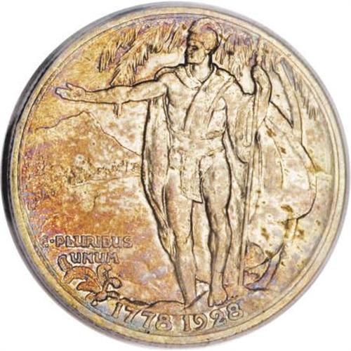 <B>1928 50C Hawaiian MS64 PCGS.</B></I> Hazy silver surfaces exhibit splashes of light olive and gold on the obverse, and a delightful blend of ivory, gold, rose, lilac, and blue on the reverse. The design elements are nicely detailed, and the overall eye appeal of this example is excellent.<BR><BR><b>Shipping:</b> Coins & Currency (<a target="_blank" href="http://www.heritageauctions.com/common/shipping.php">view shipping information</a>)