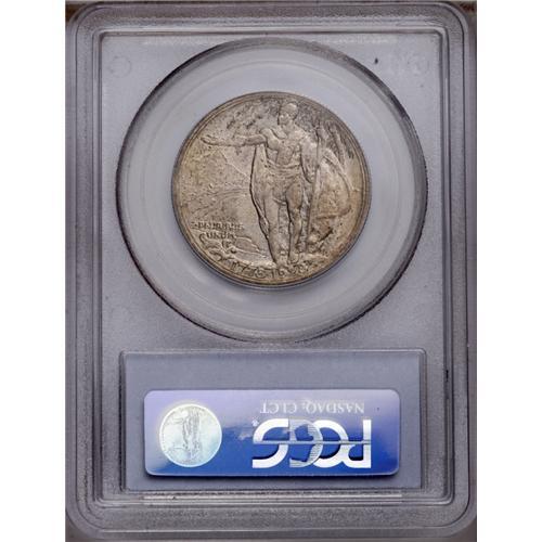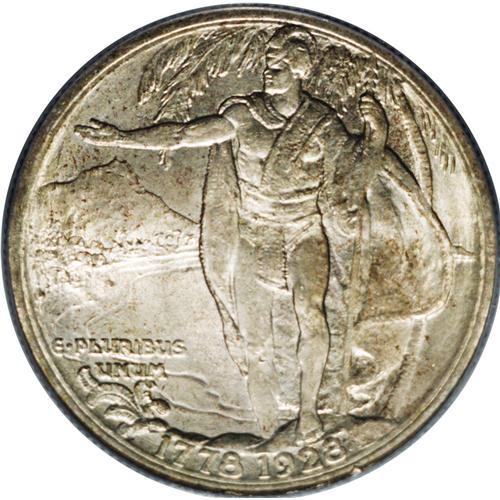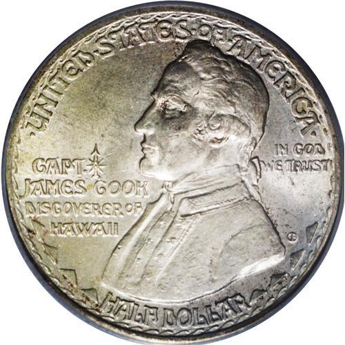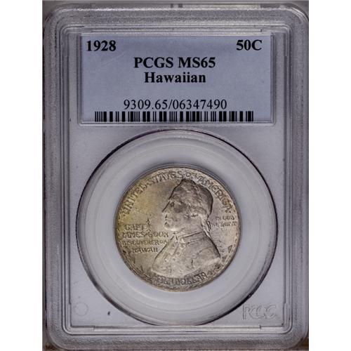 <B>1928<50C> Hawaiian MS65 PCGS.</B></I> Bright and satiny with a dusting of golden-gray iridescence over each side, this Gem is remarkably free of distracting blemishes in the prime focal areas. Neither the obverse nor the reverse are inadequately defined in a single area. For accuracy's sake, we note a few small, out-of-the-way contact marks on the obverse.