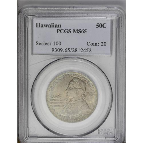 <B>1928<50C> Hawaiian MS65 PCGS.</B></I> One of several high grade examples in the sale, this richly toned Gem is layered in violet-gray and amber shades that yield to a thin ring of pastel blue at the borders. Hawaiian half dollars in any grade are sought-after by silver commemorative collectors and Hawaiiana specialists alike, with Gems of course taking on even greater significance.