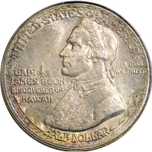 <B>1928 50C Hawaiian MS65 PCGS.</B></I> Though this example does not feature the greenish-gold patina favored by many collectors, its palette of orange, rose, and violet-gray is equally pleasing. A touch of softness is noted on Cook's hair, but the details are otherwise solid, and the luster is strong. An elegant representative that would fit well in a high-end type or date set.<BR><BR><b>Shipping:</b> Coin/Currency (<a target="_blank" href="http://www.heritageauctions.com/common/shipping.php">view shipping information</a>)