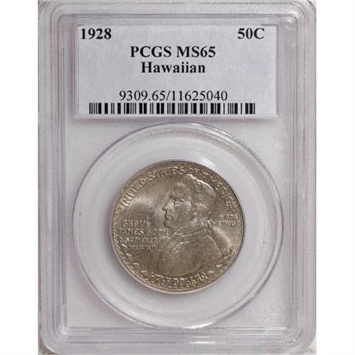 <B>1928 50C Hawaiian MS65 PCGS.</B></I> Subtle blends of peach, powder-blue, and olive-green endow this satiny and nearly unabraded Hawaiian half. Sharply struck and attractive. The lowest mintage type in the silver commemorative series, and examples with rich original toning are subject to voracious demand.<BR><I>From The Frank DuVall Collection of U.S. Commemoratives.</B></I><BR><BR><b>Shipping:</b> Coins & Currency (<a target="_blank" href="http://www.heritageauctions.com/common/shipping.php">view shipping information</a>\)