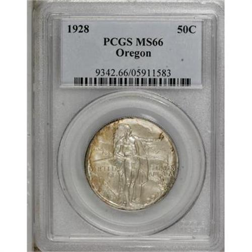 <B>1928 50C Oregon MS66 PCGS.</B></I> PCGS Population (346/63). NGC Census: (393/80). Mintage: 6,028. Numismedia Wsl. Price for NGC/PCGS coin in MS66: $420. (#9342)<BR><BR><b>Shipping:</b> Coins & Currency (<a target="_blank" href="http://www.heritageauctions.com/common/shipping.php">view shipping information</a>)
