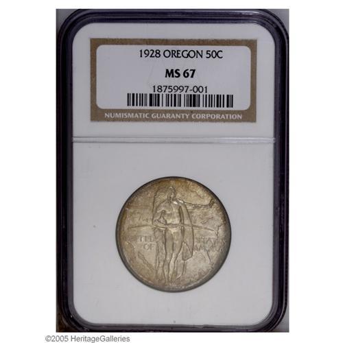 1928 50C Oregon MS67 NGC. Autumn-russet toning adorns 1928[50C] Oregon MS67 NGC.