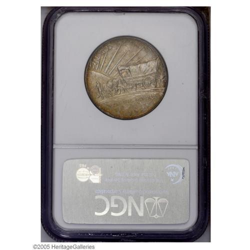<B>1928<50C> Oregon MS67 NGC.</B></I> Autumn-russet toning adorns this lower mintage piece. A minimum of marks are to be found. Only 3 coins graded higher by either NGC or PCGS.
