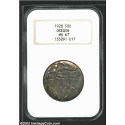 1928 50C Oregon MS67 NGC. Deeply toned with waves of golden-brown, lime-green, and lavender patina. A well struck and magnificently preserved Superb Gem that has vibrant luster despite the rich colors. Important notice: We expect to be auctioning lots at the rate of 200-250 per hour. Sometimes eBay Premier live bid software cannot keep up with that pace, so we strongly recommend that you place a realistic proxy bid now as insurance to avoid disappointment. Also please note that all Heritage/CAA lots purchased through eBay Premier carry a 20% Buyer's Premium. Please make sure you read the Terms and Conditions.