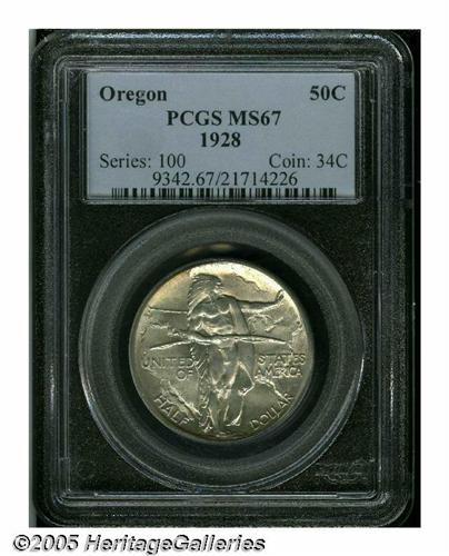 <B>1928<50C> Oregon MS67 PCGS.</B></I> Superb quality for this lower mintage date, exhibiting lustrous untoned surfaces and only the most trivial surface marks. Population: 49 in 67, 0 finer (5/05).