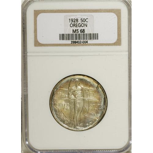 1928 50C Oregon MS68 NGC. Following the 1928 issue, fi