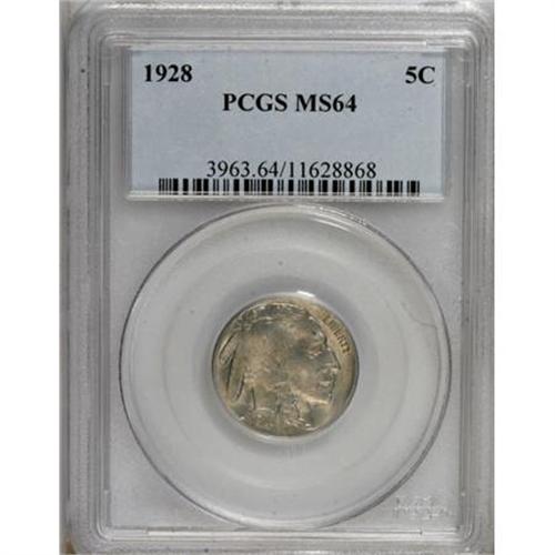 <B>1928 5C MS64 PCGS.</B></I> PCGS Population (521/611). NGC Census: (300/237). Mintage: 23,411,000. Numismedia Wsl. Price for NGC/PCGS coin in MS64: $92. (#3963)<BR><BR><B>Coin Engraver:</B> James E. Fraser<BR><BR><b>Shipping:</b> Coins & Currency (<a target="_blank" href="http://www.heritageauctions.com/common/shipping.php">view shipping information</a>)