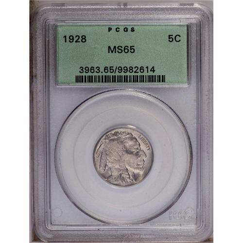 1928 5C MS65 PCGS. Untoned and heavy on the mint frost 1928[5C] MS65 PCGS.