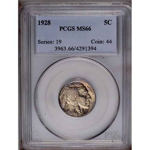 1928 5C MS66 PCGS. Radiantly lustrous, champagne color 1928[5C] MS66 PCGS.