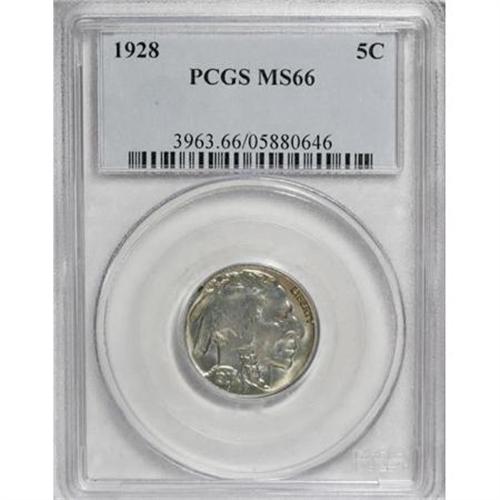 <B>1928 5C MS66 PCGS.</B></I> Soft, swirling luster with hints of quicksilver enlivens the sea-green and peach surfaces of this attractive Premium Gem. Well-defined for the issue, though the Indian's braid shows a hint of softness. PCGS has certified 12 finer coins (1/08).<BR><BR><B>Coin Engraver:</B> James E. Fraser<BR><BR><b>Shipping:</b> Coins & Currency (<a target="_blank" href="http://www.heritageauctions.com/common/shipping.php">view shipping information</a>)