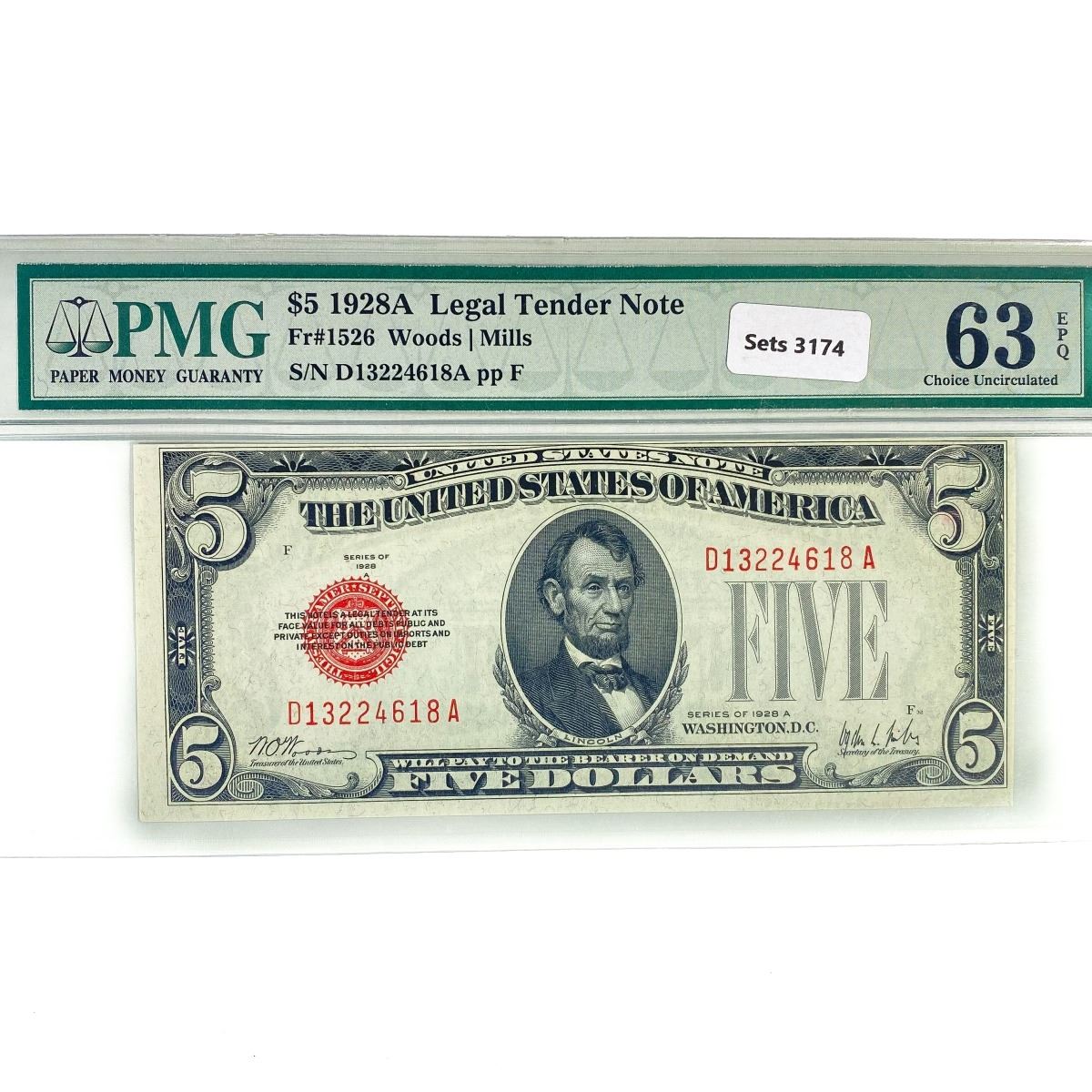 1928 A $5 Legal Tender Note PMG Ch UNC 63