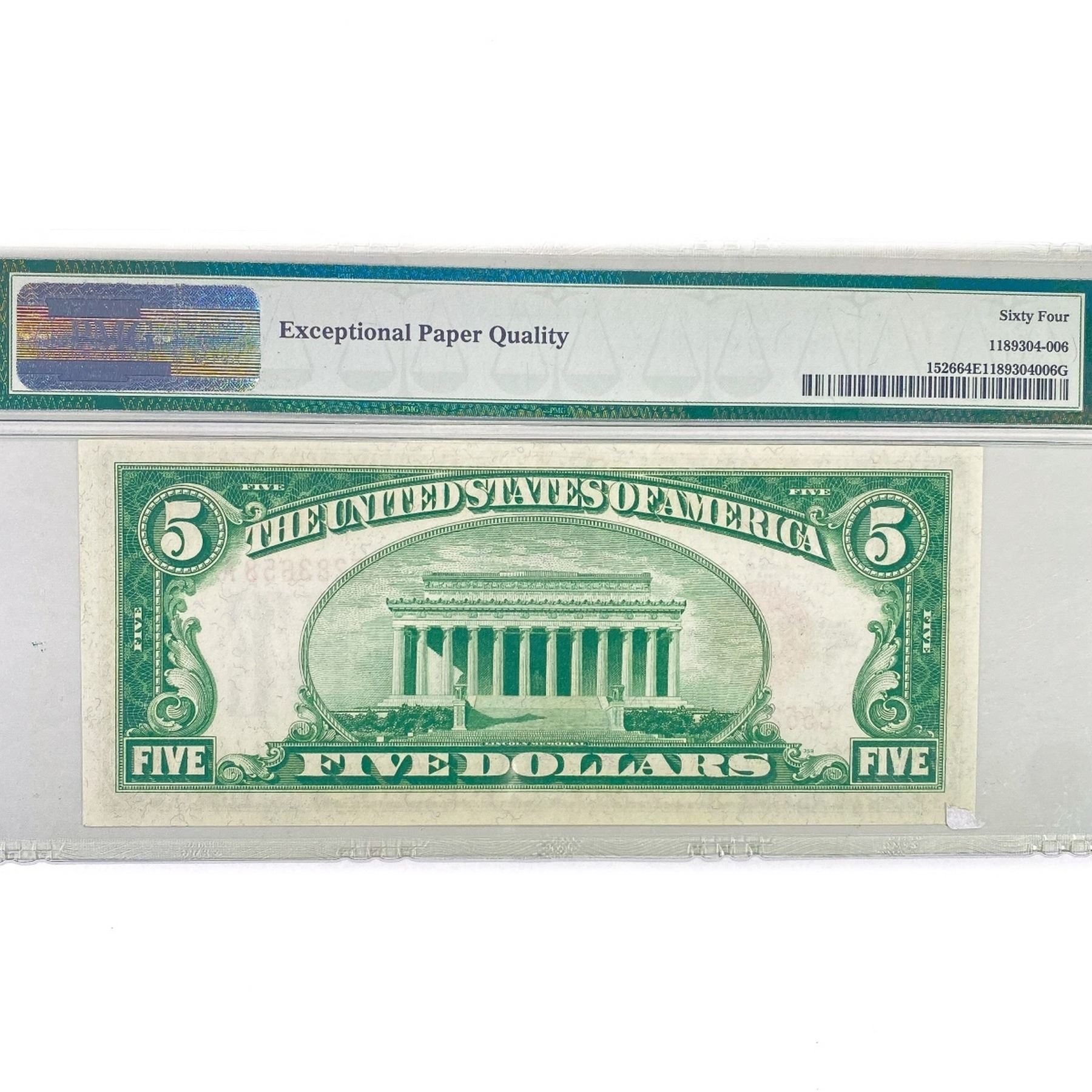 1928 A $5 Legal Tender Note PMG Ch UNC 64