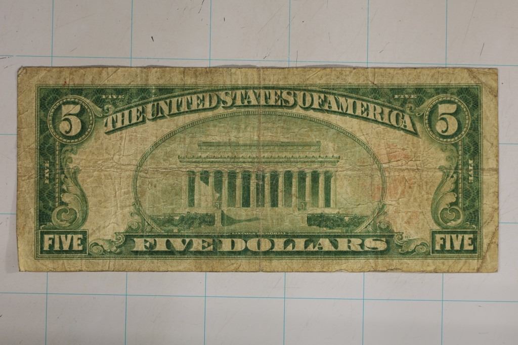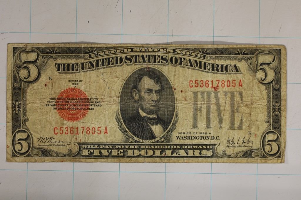 1928-A US $5 RED SEAL NOTE CIRCULATED