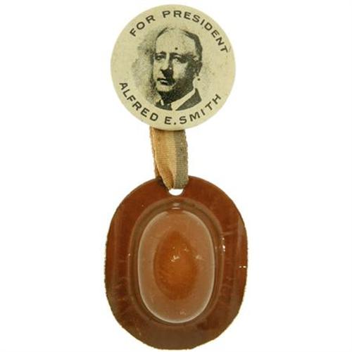 <B>1928 Al Smith Presidential Campaign Button with Celluloid Brown Derby,</B></I> 1 ¼” (3 ¼” overall). Fine. <B></B></I><BR><BR><b>Shipping:</b> Miscellaneous Collectibles, Smal (<a target="_blank" href="http://www.heritageauctions.com/common/shipping.php">view shipping information</a>)